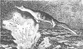 "At that moment I had with me in the conning tower six of my officers of the watch, including the chief engineer, the navigator, and the helmsman. Simultaneously we all drew one another's attention to this wonder of the seas, which was writhing and struggling among the debris. We were unable to identify the creature, but all of us agreed that it resembled an aquatic crocodile, which was about 60-feet long, with four limbs resembling large webbed feet, a long, pointed tail and a head which also tapered to a point. Unfortunately we were not able to take a photograph, for the animal sank out of sight after ten or fifteen seconds."